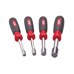 Milwaukee® four piece SAE nut drivers feature universal driver heads which fit 4X more fasteners including square, hex, twelve point and spline. Designed for maximum durability the Wrench Ready™ hex steel shanks are forged and chrome plated. Milwaukee® nut drivers are designed for the jobsite and include Milwaukee® limited lifetime warranty.