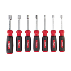 Milwaukee® seven piece SAE hollow shaft nut drivers feature universal driver heads which fit 4X more fasteners including square, hex, twelve point and spline. Designed for maximum durability the Wrench Ready™ hex steel shanks are forged and chrome plated. Milwaukee® nut drivers are designed for the jobsite and include Milwaukee® limited lifetime warranty.