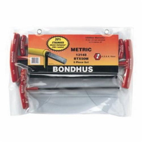 Bondhus® 13148 Graduated Length Key Set, 5 Pieces, 4 to 10 mm Hex, Ergonomic Grip/T-Handle Handle, Protanium® High Torque Steel, ProGuard™