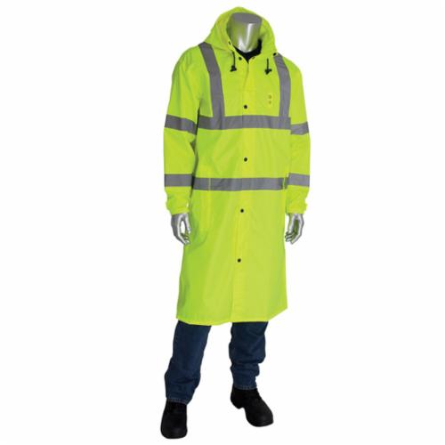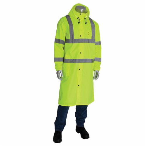 PIP® FALCON™ Viz™ 353-1048-LY/M All Purpose Waterproof Rain Coat, M, Hi-Viz Lime Yellow, 150D Polyester Coated with Polyurethane, Resists: Water, ANSI 107 Type R Class 3, Concealed Hood