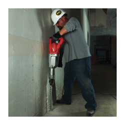 Perform a variety of digging and drilling jobs on floors or the ground with this heavy duty INLINE™ design. The 2 in SDS Max® drive rotary hammer delivers 19.9 ft-lb of blow energy for drilling large holes in concrete or asphalt, bushing, driving ground rods, scraping floors, digging and tamping. The INLINE™ design offers more comfortable operation and the soft-grip side-handle can be attached in three positions - PLUS™ the rear switch handle - to minimize bending. A system of anti-vibration absorption and reduction components decreases operator fatigue. Sophisticated electronic feedback offers consistent operation and overload protection. This robust electric hammer features a variable speed dial for optimum control, a service reminder light and easy access for maintenance. You can position chisels more efficiently with the SDS Max® bit holder system.