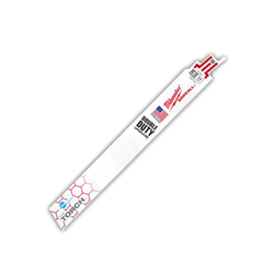 Milwaukee® SAWZALL® The Torch™ Ice Hardened™ Reciprocating Saw Blade, Double Duty Straight Back, 9 in Length, 1 in Width, 0.042 in Thickness, 14 TPI, Matrix II Teeth, 1/2 in Tang, Universal/Toothed Edge Tang, Bi-Metal Cutting Edge, Bi-Metal Body, Bright, Applicable Materials: Masonry Material, Most Metal, Non-Ferrous Soft Metal and Wood