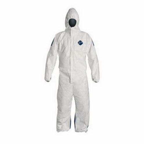 DuPont® TD127S Chemical Resistant Coverall, M, 36-3/4 to 40-1/4 in Chest, 28 in Inseam, Tyvek® Fabric, White/Blue