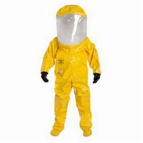 DuPont™ BR557TYL4X00017R High Visibility Encapsulated Suit With Attached Gloves and Socks, A Level, ASTM D1777, D3776, D751, D5597, D5034, F1052, 16 CFR 1610 Class 1, 4XL, Yellow, 18 mil Tychem® BR, Rear Entry, 34-1/2 in L Inseam, Tychem® BR Sock