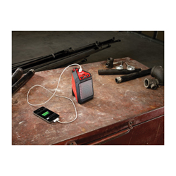 Louder, tougher, smaller, big speaker sound with the durability you expect from Milwaukee®, the M12™ wireless jobsite speaker uses Bluetooth® to pair with portable electronic devices and stream music from upto 30 ft away. Amplified by a premium speaker with integrated bass port for loud, clear sound at all volumes, the rugged construction is tested to withstand drops, water and debris. A 2.1 A USB charger for phones, media players and tablets plus an integrated hanging loop maximize versatility. Powered by all M12™ REDLITHIUM™ batteries, the wireless jobsite speaker changes the game in tough, portable sound.