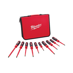 Milwaukee® Screwdriver Set, Series: ECX™, Measurement System: Imperial, 10 Piece, Yes ESD-Safe, Yes, Specifications: 1/4 to 3 in Drive, 1000 VAC Insulation, Round Shank, Straight Handle, Polycarbonate Handle/Steel Shank, Black/Red, 12 in W x 15 in D x 2-1/4 in H Dimensions