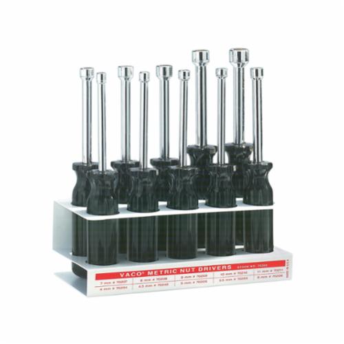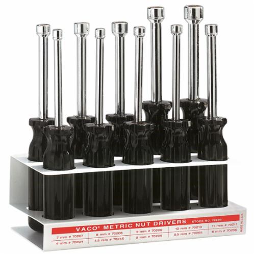 Klein® Nutdriver Set, Measurement System: Metric, 10 Piece, 4 to 11 mm, 7 in Overall Length, Smooth Comfordome®, ASME Specified Specifications Met, Polished Chrome, For Use With: Turning Fasteners, 3 in L Shank, Plastic/Steel, Black