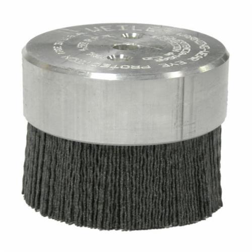 Burr-Rx® Disc Brush, Crimped Maximum Density Miniature Round Straight, 3 in Brush Dia, 3/8 in Center Hole, 0.055 in Filament/Wire Diameter, Ceramic Fill, 1-1/4 in Trim Length, 4500 rpm Maximum, Medium Grade, 80 Grit