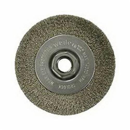 Weiler® 00156 Narrow Face Wheel Brush With Nut, 4 in Dia Brush, 1/2 in W Face, 0.006 in Dia Crimped Filament/Wire, 5/8-11 Arbor Hole