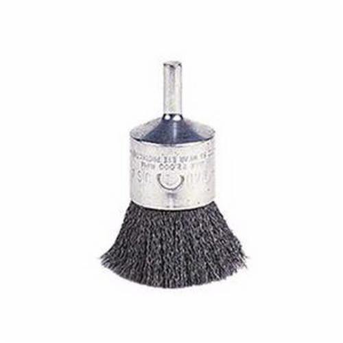 Weiler® End Brush, Stem Mount, 1 in Brush Dia, 1/4 in Shank Dia, Crimped Filament/Wire, 0.014 in Filament/Wire Diameter, Steel Fill, 1 in Trim Length, 22000 rpm Maximum, 6.688 in Overall Length