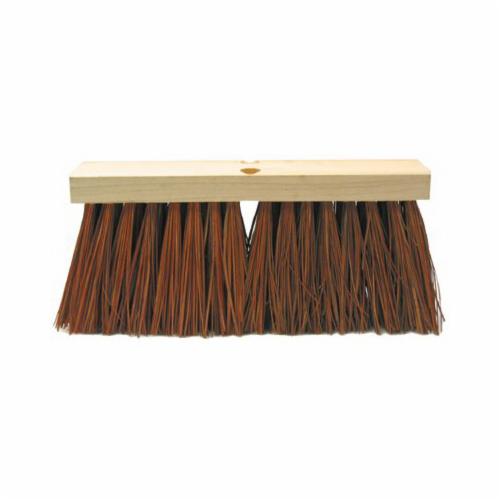 Weiler® Push Broom, Tapered Tip, 16 in Overall Length, 6-1/4 in Trim Length, Dyed Palmyra Bristle, Reddish Brown Bristle, Hardwood Block, 16 in Block, Hardwood Handle