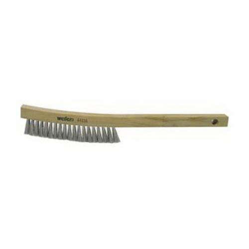 Weiler® Plater Scratch Brush, 5-1/2 in Brush, Hardwood Block, 13 in L x 7/8 in W Block, 1 in Trim Length, 0.006 in Trim, Steel Trim, 3 x 19 Rows, Curved, Wood Handle