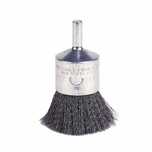 Weiler® End Brush, Stem Mount, 1 in Brush Dia, 1/4 in Shank Dia, Crimped Filament/Wire, 0.0104 in Filament/Wire Diameter, Steel Fill, 1 in Trim Length, 22000 rpm Maximum, 6.688 in Overall Length