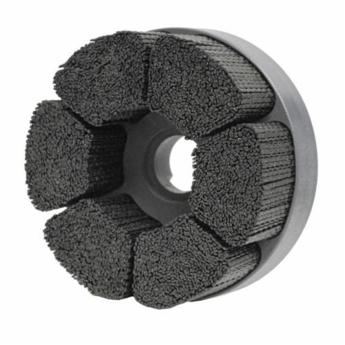 Burr-Rx® Disc Brush, Crimped Rectangle Shell Mill Holder Straight, 6 in Brush Dia, 1-1/4 in Center Hole, Ceramic Fill, 1-1/2 in Trim Length, 2500 rpm Maximum, Medium Grade, 80 Grit