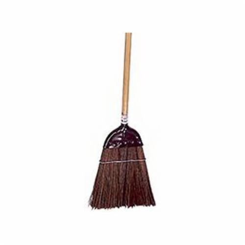 Weiler® Upright Broom, Metal Cap, Palmyra Bristle, 12 in Wire Banded Sweep, 10 in Trim Length, Wood Handle, 55 in Overall Length, Brown Sew Color