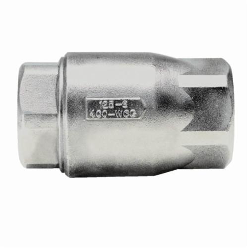 Apollo™ In-Line Ball Cone Check Valve, Standard, Series: 62-100, 1-1/4 in Nominal, FNPT End Style, 400 psig Pressure, 350 deg F, 44 gpm Flow Rate, Spring-Loaded Latch-Lock Handle Actuator, 4.18 in Inlet to Outlet Length, Stainless Steel Body, Stainless Steel Spring Trim, 2.37 in H Dimensions, Domestic