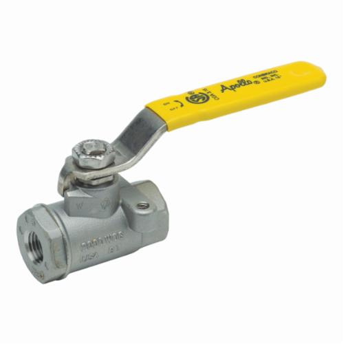 Apollo™ Ball Valve, 2-Piece, Series: 76-100, 1/2 in Nominal, FNPT, 2000 psi, 100 deg F, Standard Port, Media: Gas/Water, 1/2 in Orifice, Latch-Lock Lever Actuator, Stainless Steel Ball, 2.23 in Inlet to Outlet Length, 1.79 in Top to Inlet Center, Stainless Steel Body, Stainless Steel Stem and RPTFE Seat Trim, RMPTFE/PTFE, Domestic