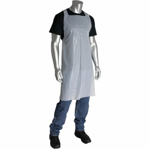 PIP® Bib Apron, Single Use, White, Polyethylene, 46 in Length, 28 in Width, Resists: Chemical, Fats, Oil and Grease