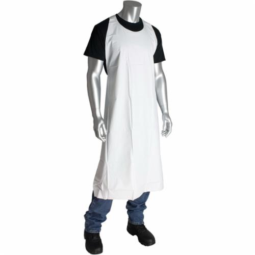 PIP® Bib Apron, Vinyl Pot Sink, White, PVC/Vinyl, 45 in Length, 35 in Width, Resists: Abrasion, Puncture, Chemical, Fats, Oil and Grease