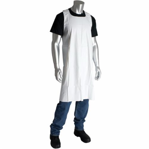PIP® Bib Apron, Vinyl Pot Sink, White, Polyethylene, 35 in Length, 33 in Width, Resists: Abrasion, Puncture, Chemical, Fats, Oil and Grease