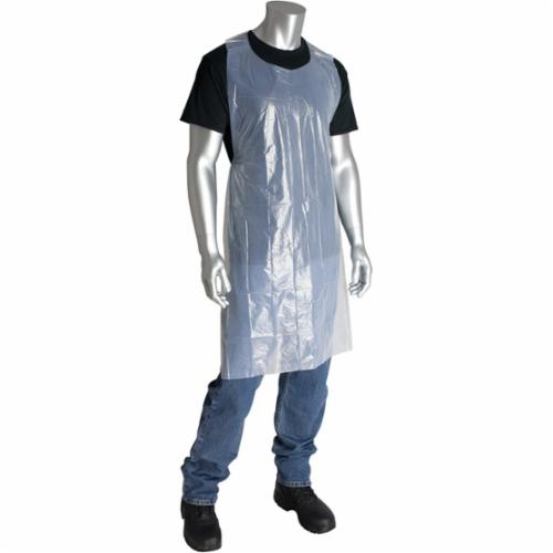 PIP® Bib Apron, Embossed Single Use, Clear, Polyethylene, 46 in Length, 28 in Width, Resists: Chemical, Fats, Oil and Grease