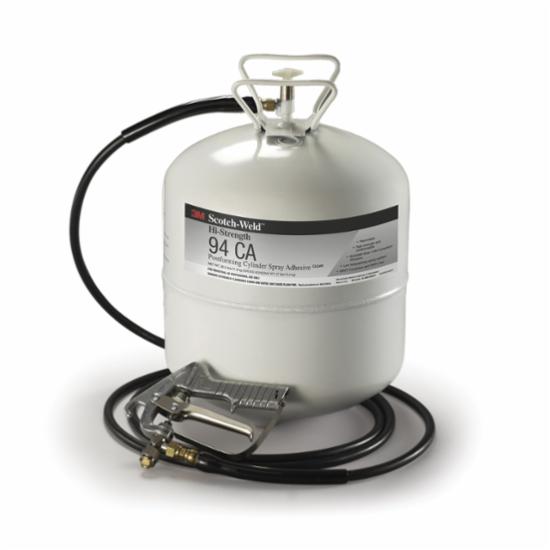 3M™ Spray Adhesive, Flammable High Strength, Large Cylinder Container, 26.2 lb Container, 26.2 lb Net Weight, 51 sq-ft Coverage, 1 min Drying, 1 to 15 min Setting, 15 min Curing, Clear, 210 deg F, 0.93 to 0.95 Specific Gravity, 79 g/L VOC, Flammability: 3.1%, 16%, EPDM Rubber, Fabric, Felt, Cork and Fibrous Glass, Latex, Urethane, Glass and Ceramic, Leather, Metal, Paper and Cardboard, ABS, PVC, Acrylic, Flexible Vinyl, High Performance Nylon, Polyolefin and Thermoplastic Elastomer, Wood and Hardboard Adheres to